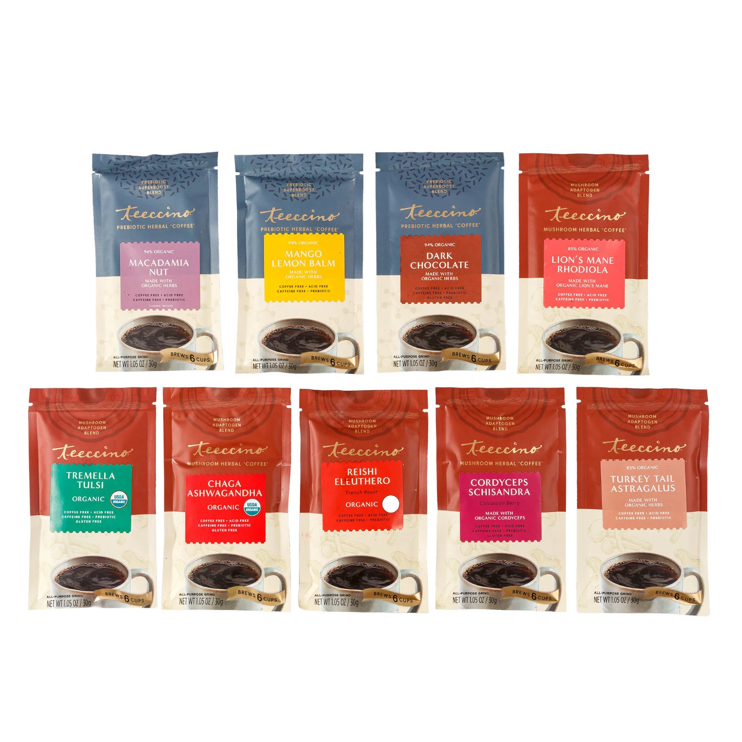 I decided to reduce my coffee consumption. When searching for a replacement beverage, I found Teeccino! It brews up nice and dark, and I can still do pour over (or brew half/half with coffee). Currently drinking Dark Chocolate and Reishi Eleuthero. They sell trial sized packets!